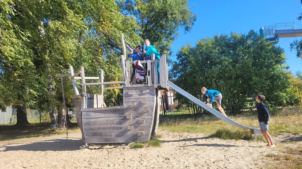 Am nächsten Tag durften wir uns bei blauem Himmel und Sonnenschein auf dem Kunstrasenplatz austoben, um den Filzteich mit Frau Amelung-Reichel wandern oder uns frei auf dem Gelände bewegen. Später gab es Mittagessen. Daraufhin gingen wir ins Fundora. Das sorgte für viel Spaß, Abwechslung und Freude. Am Abend konnten alle Kinder bis zur Nachtruhe die freie Zeit genießen, denn am Freitag nach dem Frühstück bzw. im Laufe des Vormittags ging es wieder nach Lichtenstein ans GymLi.