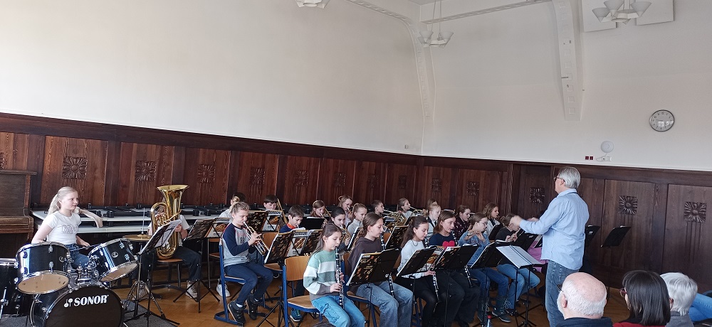 Am heutigen Samstag, dem 31.01.25 fand in unserem GymLi der Tag der offenen Tür statt. Ab 9.30 Uhr konnten Groß und Klein in die Räume beider Häuser unseres Gymnasiums hineinschauen. Erwartungsvoll betraten bereits ca. 9 Uhr die ersten Besucher das Haus 2, denn die öffentliche Probe der Bläserklasse 5c stimmte auf die Veranstaltung ein. Es folgte dann die Bläserklasse 6c, die ebenfalls mit ihrem Können überzeugen konnte.
