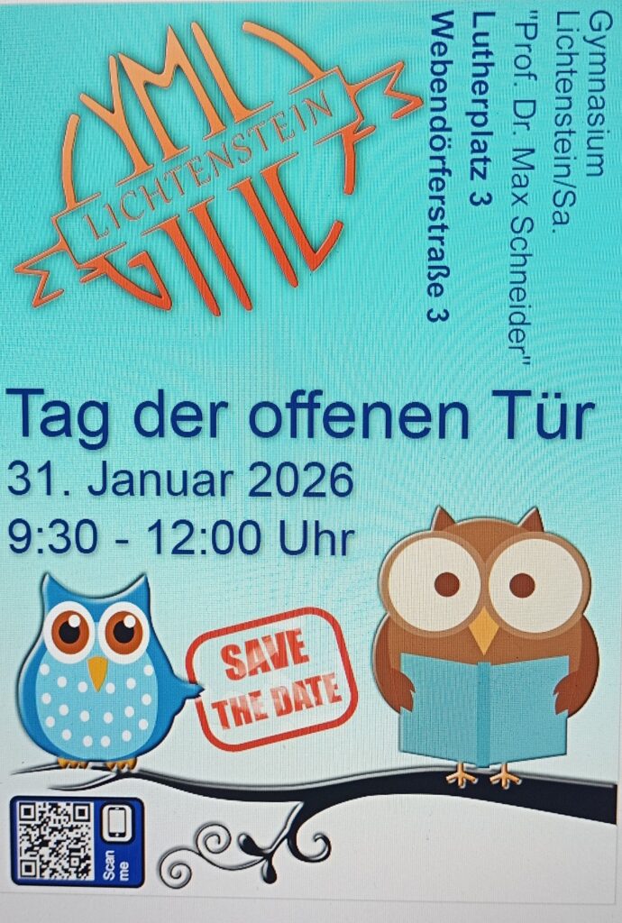 Das Gymnasium Lichtenstein lädt herzlich zum Tag der offenen Tür am 31.01.2026 ein. Hier bei uns am GymLi gibt es viel zu entdecken. In der Aula des Hauses 2 sorgen die Bläserklassen musikalisch für gute Laune. In den Klassenräumen sind viele Spiele, Basteleien und Ausstellungen zu finden. Bei Fragen zum Unterricht oder zum Gymnasium können Sie sich gerne an die Lehrer und Lehrerinnen wenden.